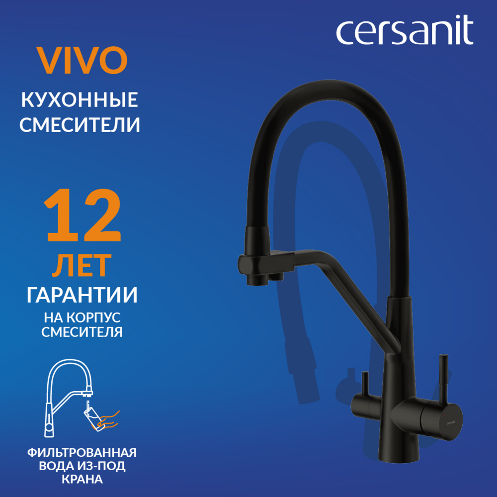 Смесители Vivo стали воплощением лучших технических идей, цель которых — сделать нашу жизнь комфортнее. Модель с необычным дизайном выгодно дополнит любую кухню, от классической до лофтовой или хайтека. Два отдельных излива под проточную и фильтрованную воду решат бытовые задачи.