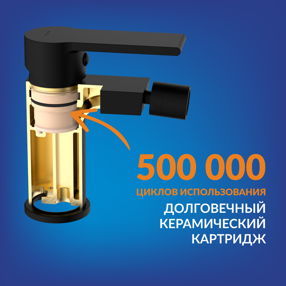 Качественный керамический картридж 35 мм с гарантией 5 лет обеспечивает плавный ход ручки и абсолютную точность регулировки температуры и напора воды. Он рассчитан на 500 тыс. циклов использования, чего хватает на долгие годы.
