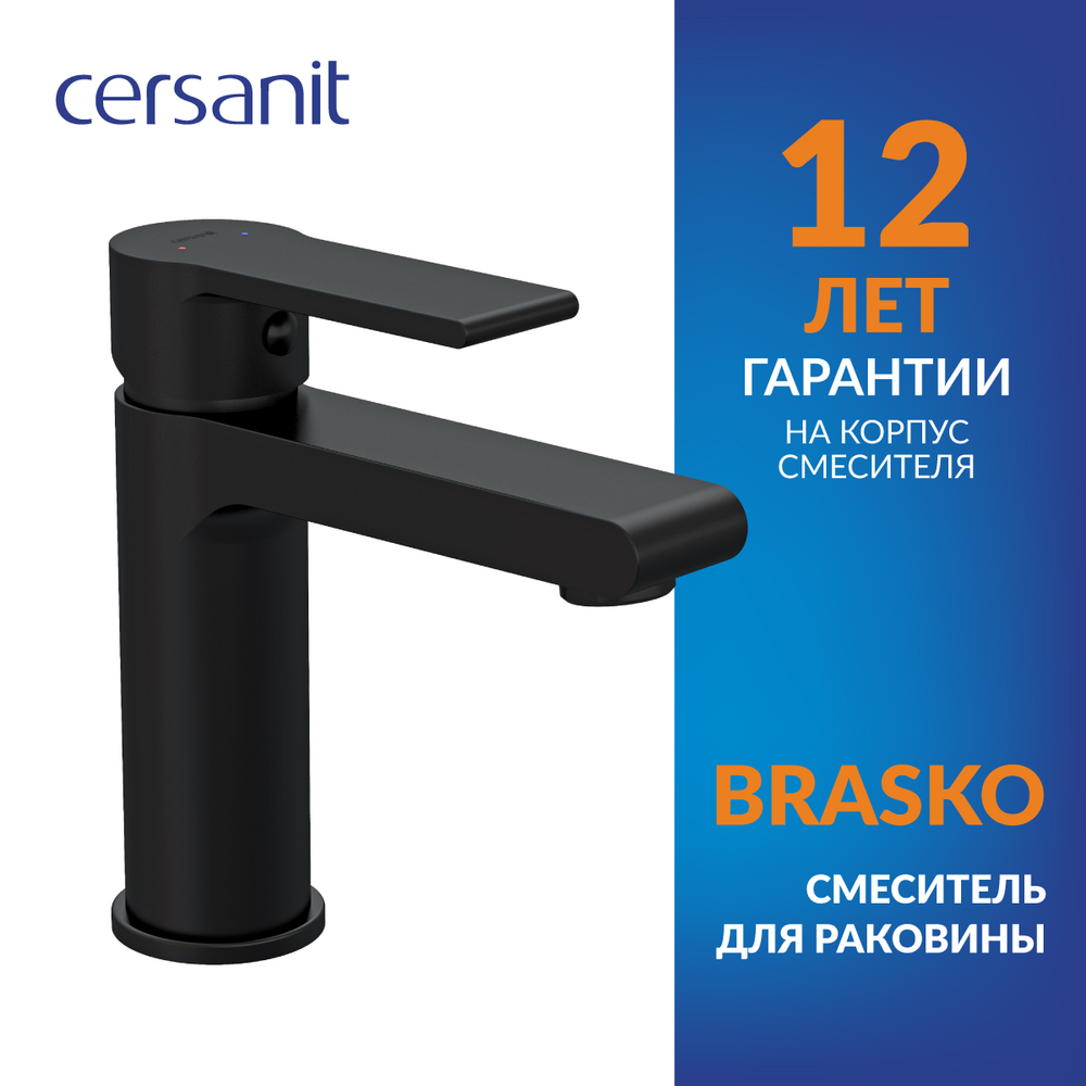 Смеситель для раковины Brasko Black совместим со встраиваемыми раковинами. Цельнолитой латунный корпус с высоким содержанием меди в составе надежно защищен изнутри от коррозии. Смесителю не страшны перепады давления в трубах, поэтому производитель дает длительную гарантию на корпус изделия — 12 лет.
