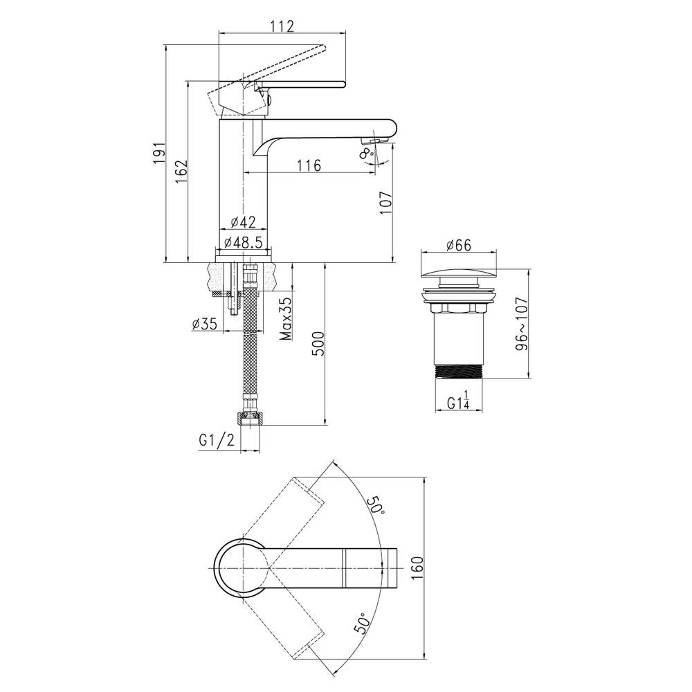 В комплекте со смесителем поставляется донный клапан клик-клак, который закрывается и открывается лёгким нажатием.