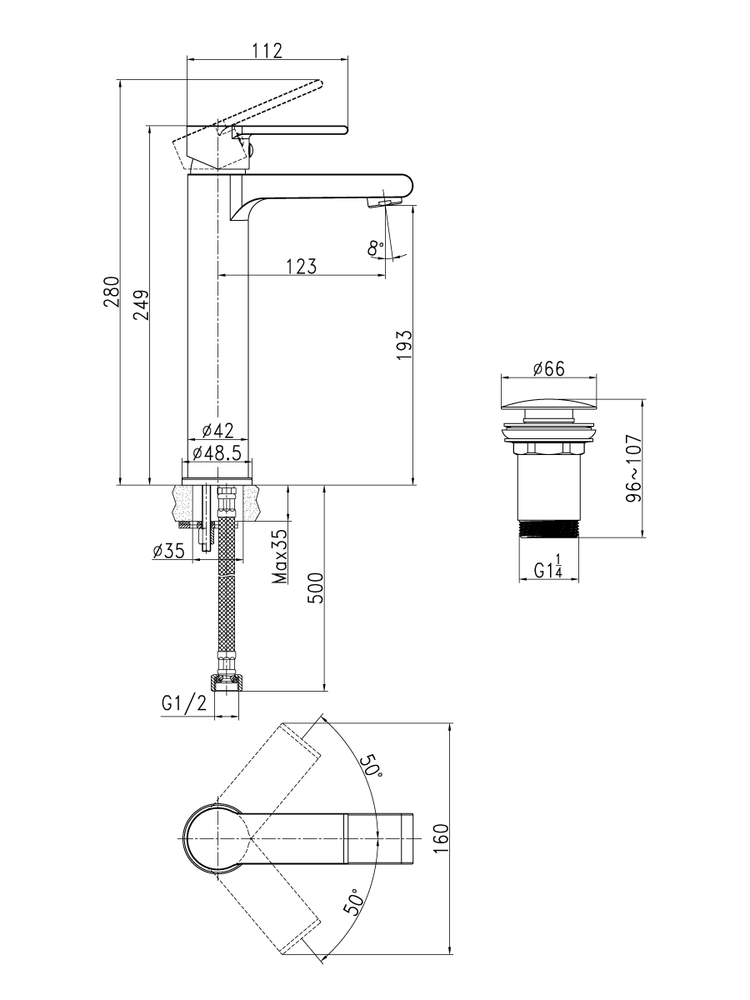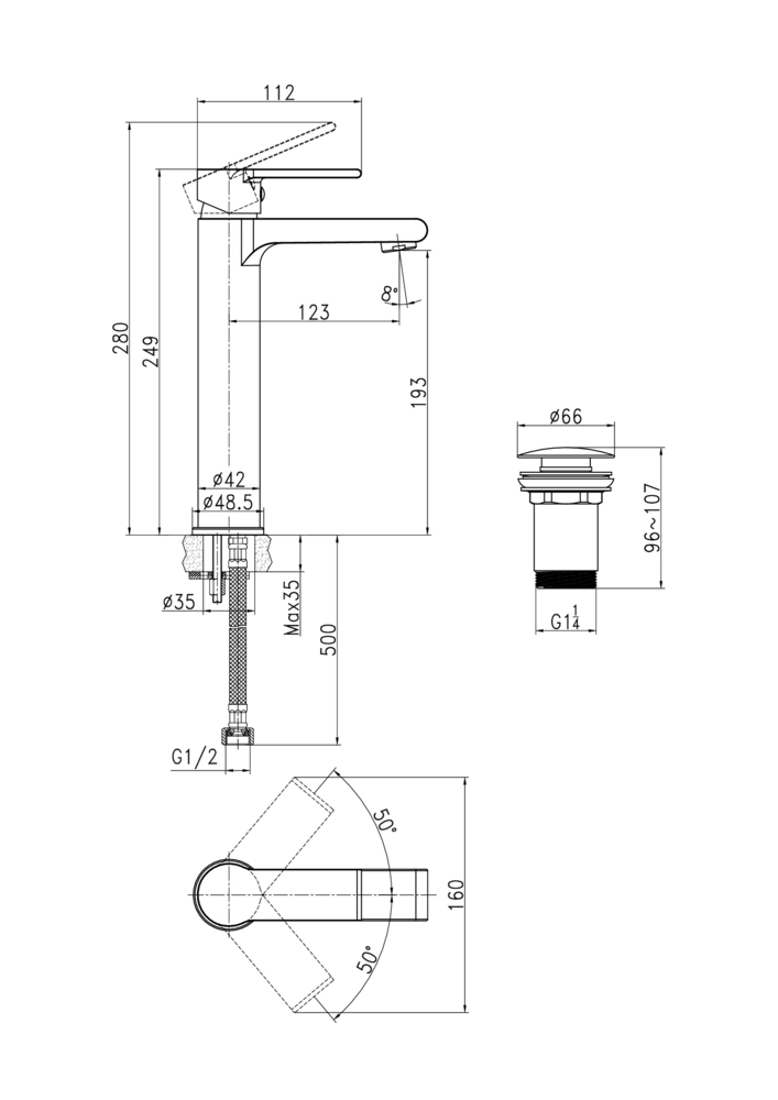В комплект входит донный клапан, оснащённый механизмом клик-клак. Благодаря ему закрывать и открывать слив в ванне можно в одно касание.