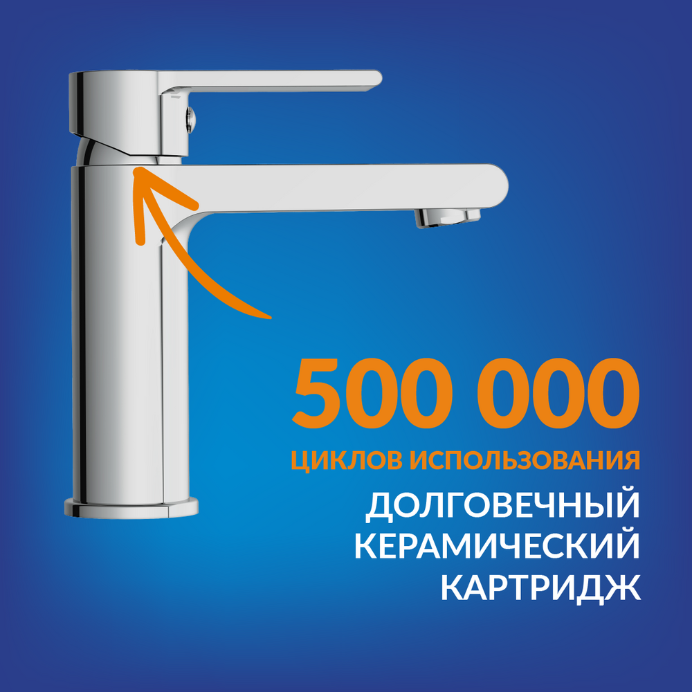 Плавный ход ручки смесителя обеспечивает качественный керамический картридж, рассчитанный на 500 тыс. циклов открытия и закрытия. За счёт мягкой и точной регулировки воды даже со слабым напором водные процедуры становятся комфортными. Cersanit даёт гарантию на картридж 5 лет.
