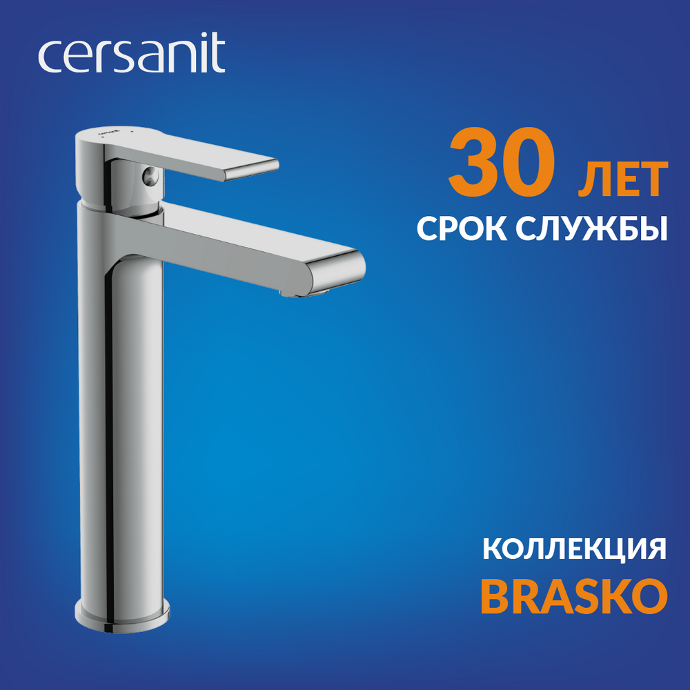 Высокий смеситель BRASKO станет отличным решением для обустройства умывальных зон с накладными раковинами. Его графичный дизайн оригинально сочетается с округлыми формами. Это эффектный инструмент для реализации современных дизайнерских задумок.