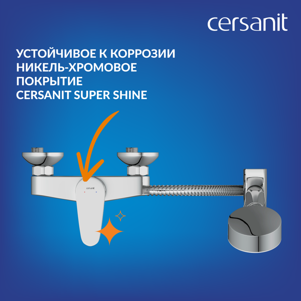Никель-хромовое покрытие Cersanit Super Shine прошло испытания в нейтрально-солевой среде, зарекомендовав себя как устойчивое к воздействию солей. Минимальное количество деталей у оборудования и плавные линии позволяют без проблем ухаживать за сантехникой и содержать в чистоте.