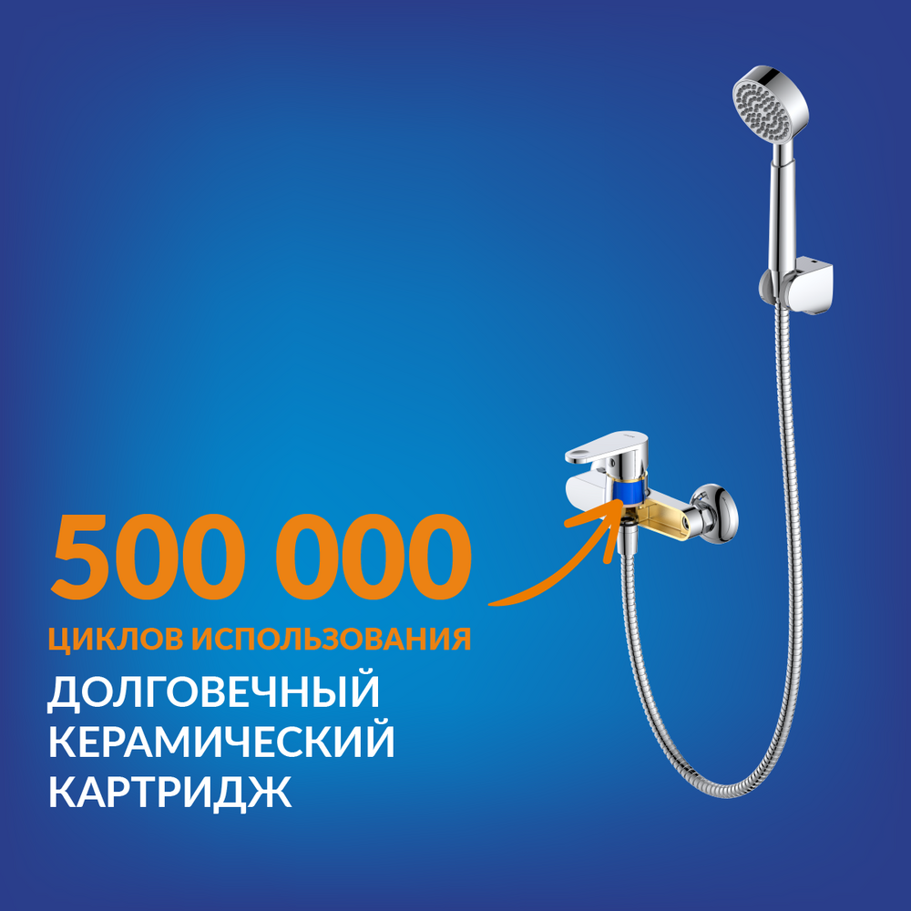Керамический картридж, рассчитанный на 500 тыс. циклов открывания и закрывания, даже при плохом напоре точно смешивает воду и обеспечивает особенно плавный ход ручки. Гарантия на картридж — 5 лет.
