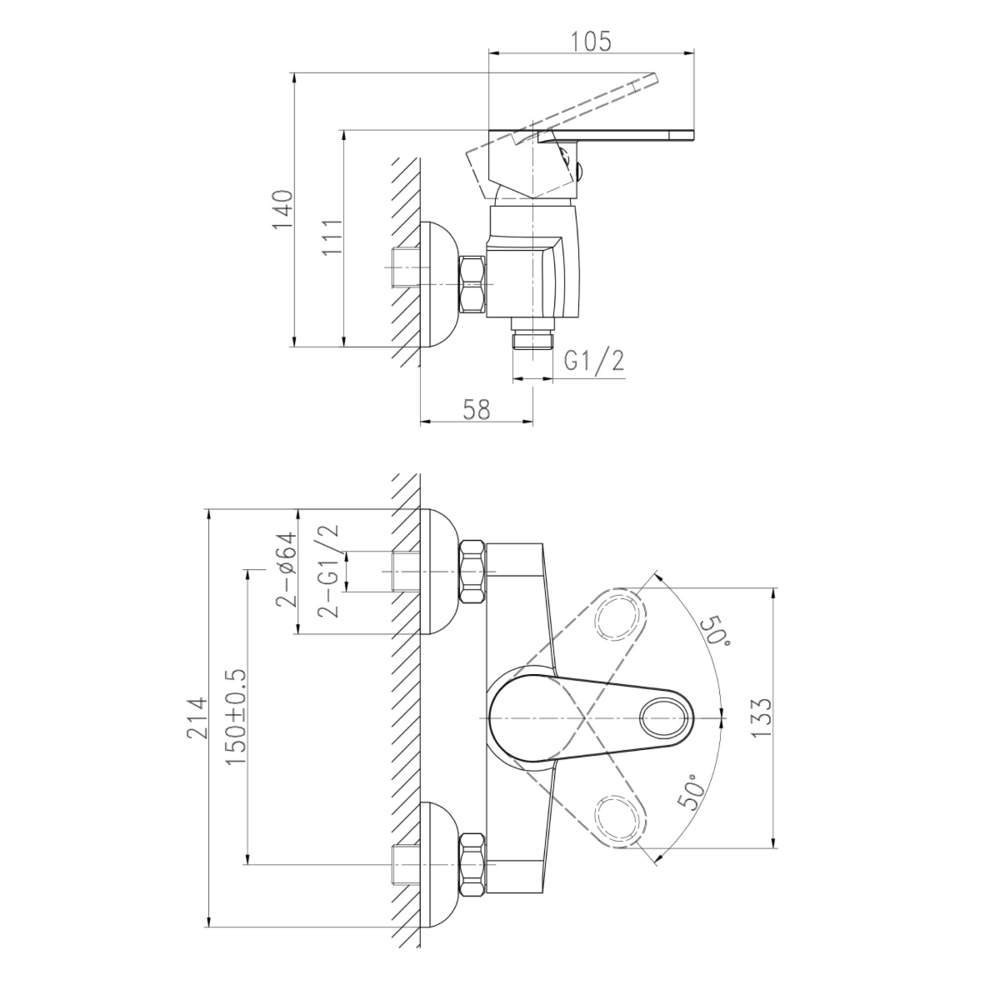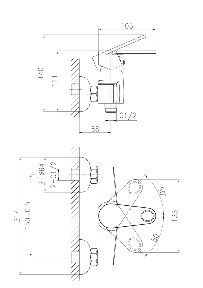 Смеситель CARI для душа (чертеж)