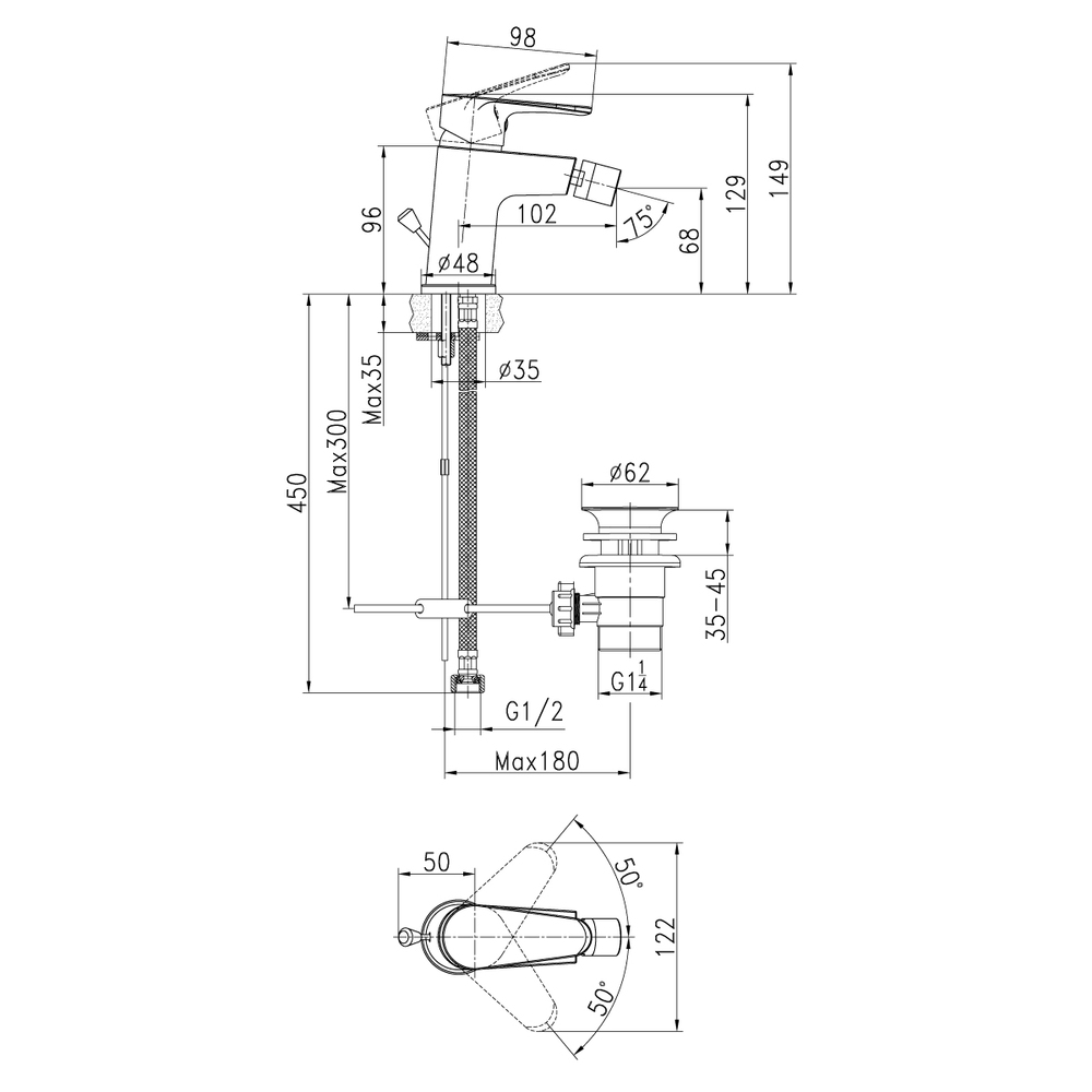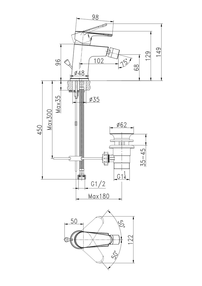 Смеситель CERSANIA для биде A63033 (чертеж)