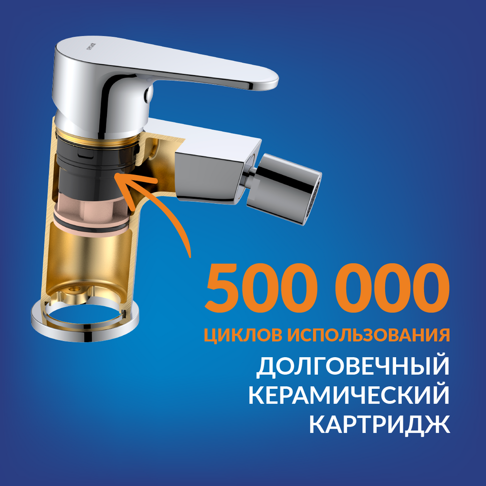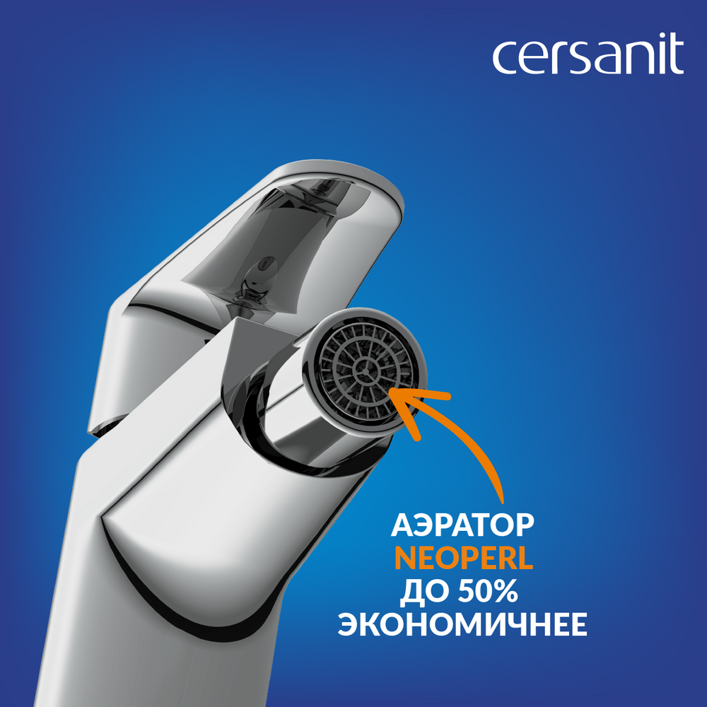 Смеситель оснащен керамическим картриджем 35 мм, рассчитанным на 500 тыс. циклов открывания и закрывания и защищенным гарантией производителя сроком на 5 лет. Он точно смешивает и подает воду заданной температуры. Аэратор Neoperl насыщает воду воздухом и подаёт ровным мягким потоком без брызг. Удобная поворотная насадка экономит воду и семейный бюджет.