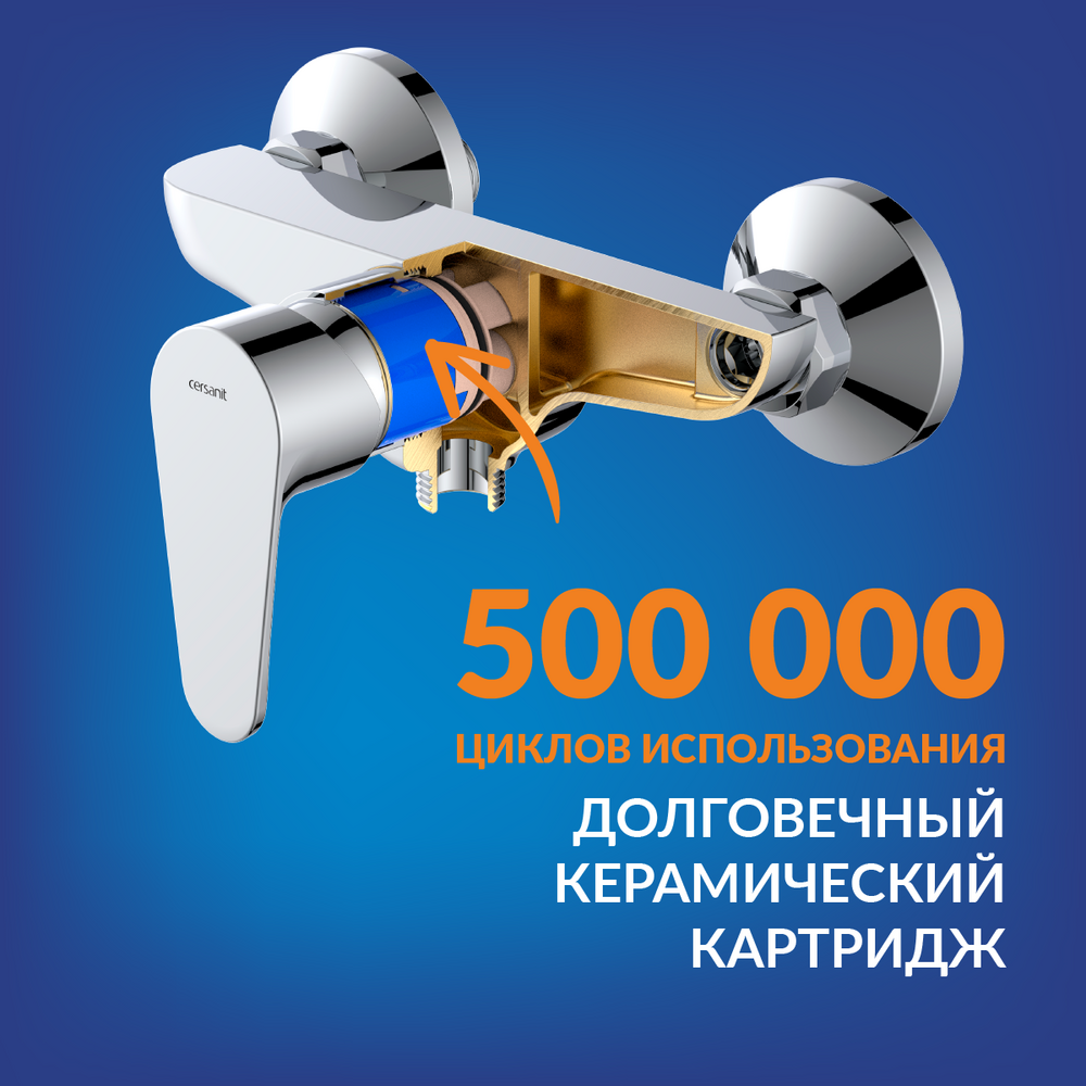 Внутри смесителя керамический картридж 35 мм, рассчитанный на 500 тыс. циклов открывания и закрывания. Благодаря нему вода точно и плавно смешивается, что добавляет комфорта гигиеническим процедурам. Производитель даёт гарантию на картридж сроком в 5 лет. Никель-хромовое покрытие Cersanit Super Shine на поверхности смесителя прошло испытания в нейтрально-солевой среде и долго остаётся сияющим, требуя минимального ухода.