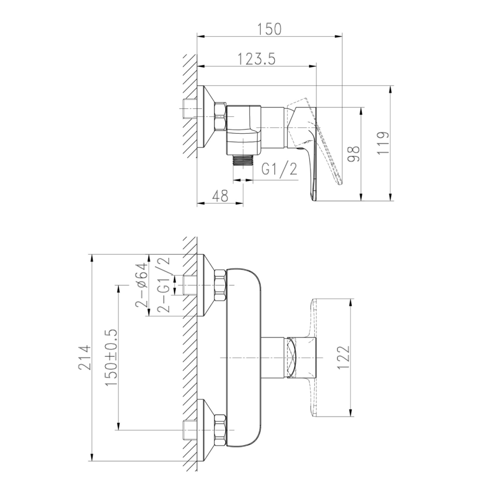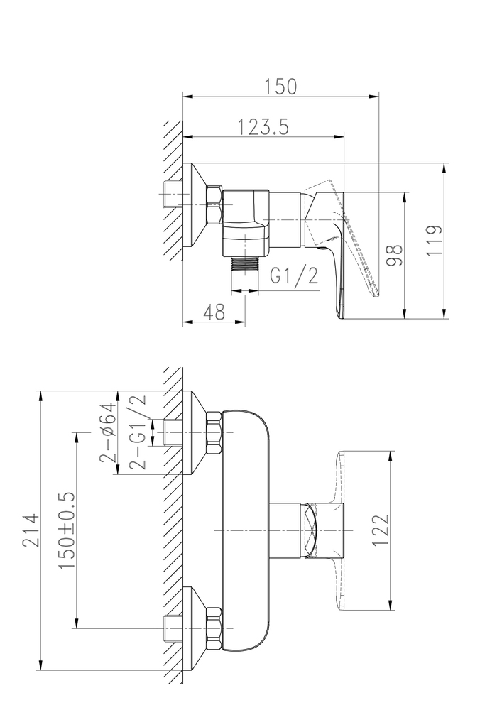 Смеситель CERSANIA для душа (чертеж)