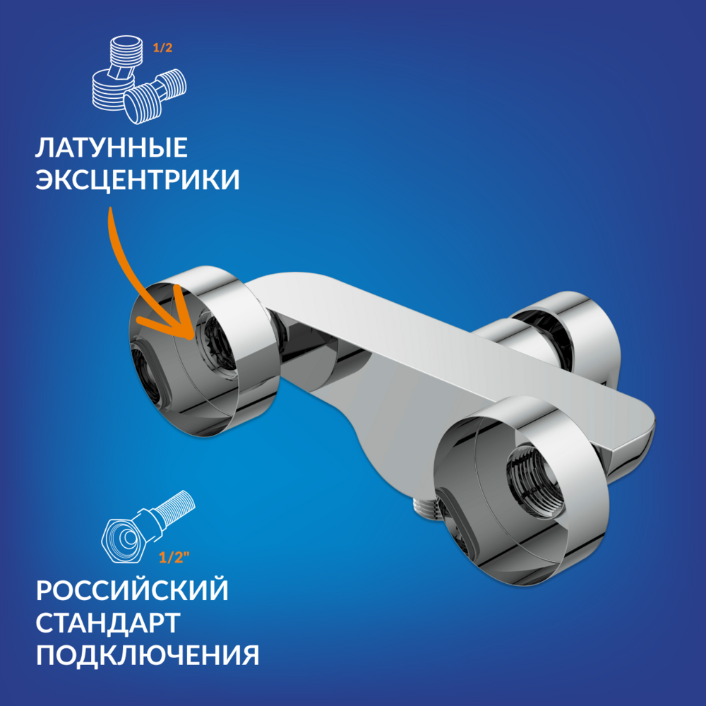 смеситель, декоративные накладки, S-образные эксцентрики, гарантийный талон, инструкция по эксплуатации