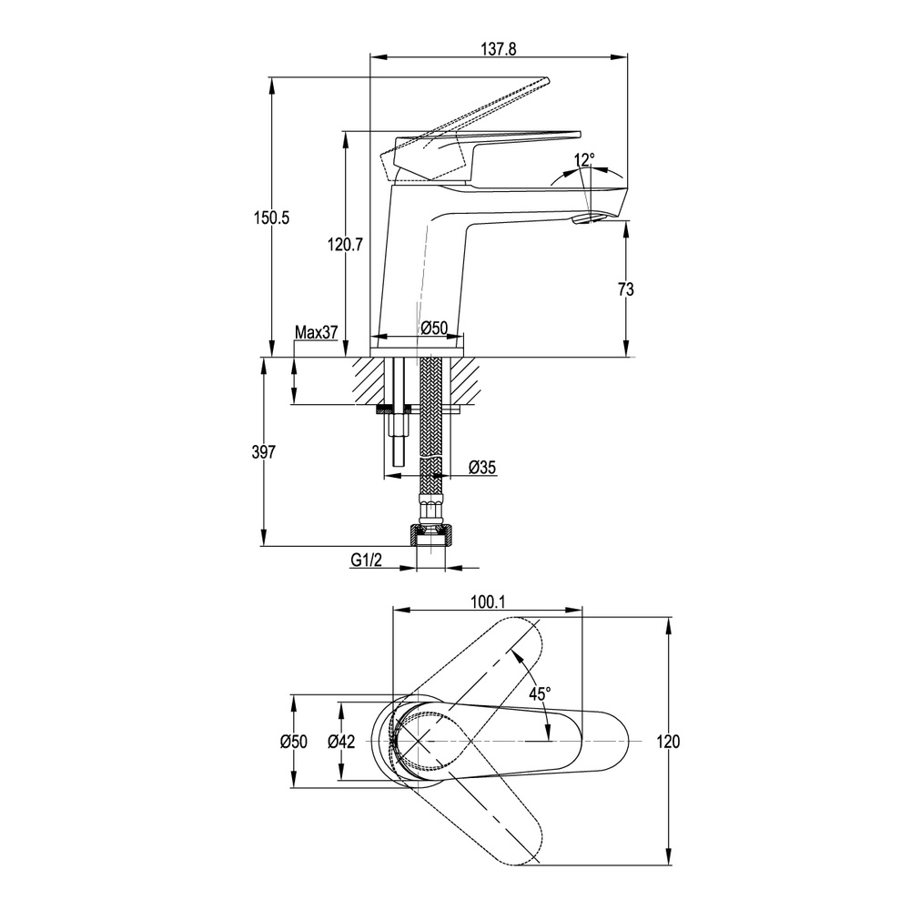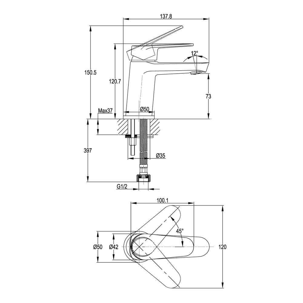 Смеситель для раковины LARA однорычажный хром (чертеж)