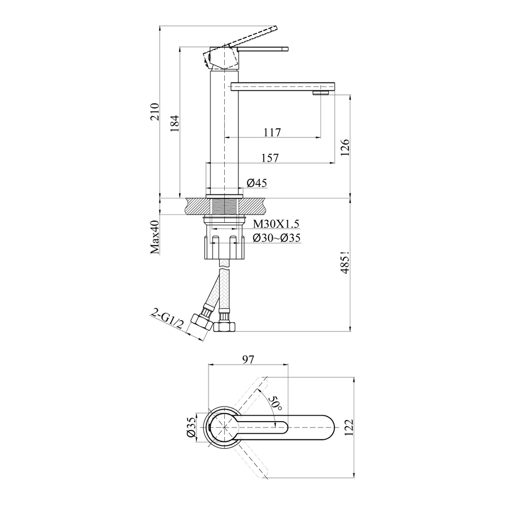Смеситель 1 шт. Подводка для воды 1/2", 2 шт. . Комплект крепления 1 шт. Инструкция по эксплуатации 1 шт. Гарантийный талон и паспорт изделия -1 шт ,