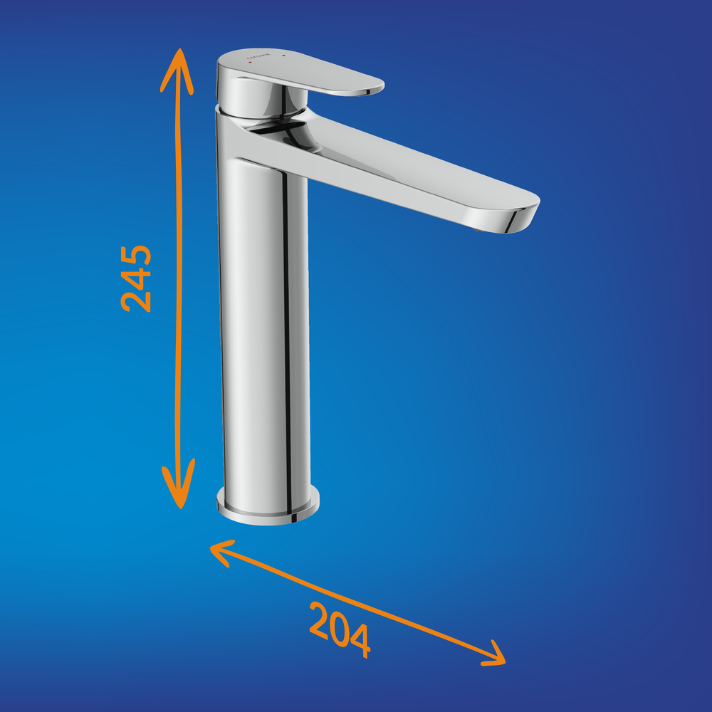 Высокий смеситель LARA с плавной формой, округлыми линиями и поверхностью с зеркальным блеском добавит изящности интерьеру.