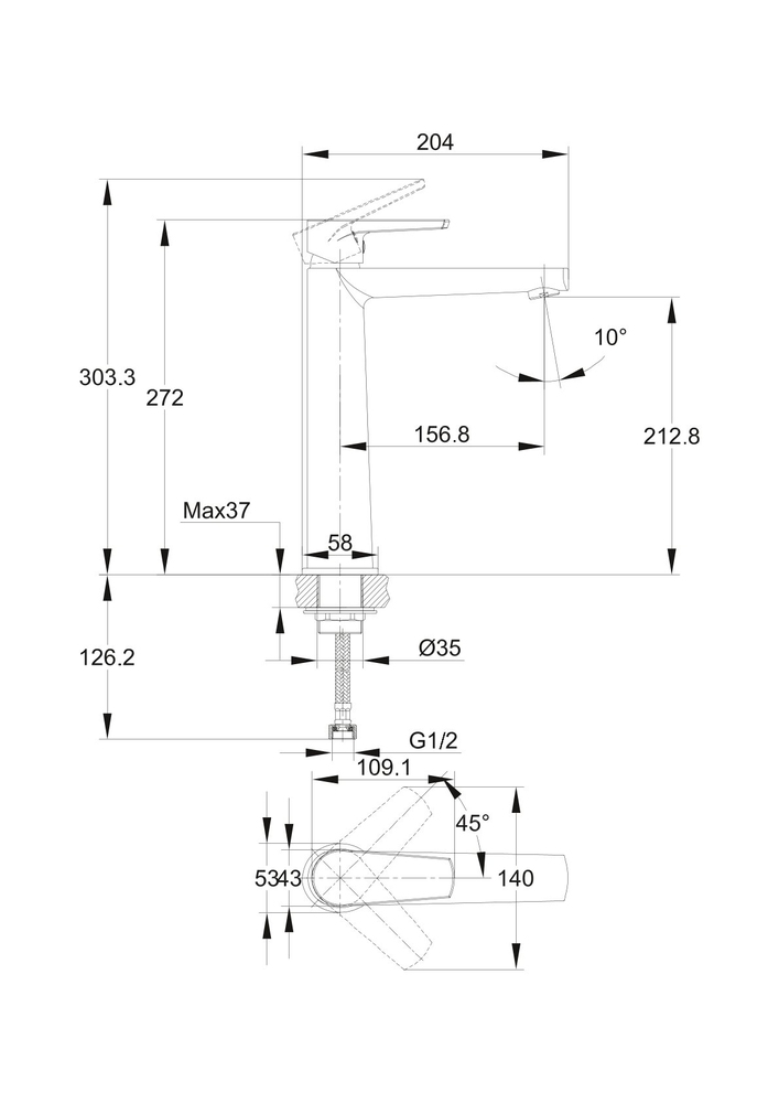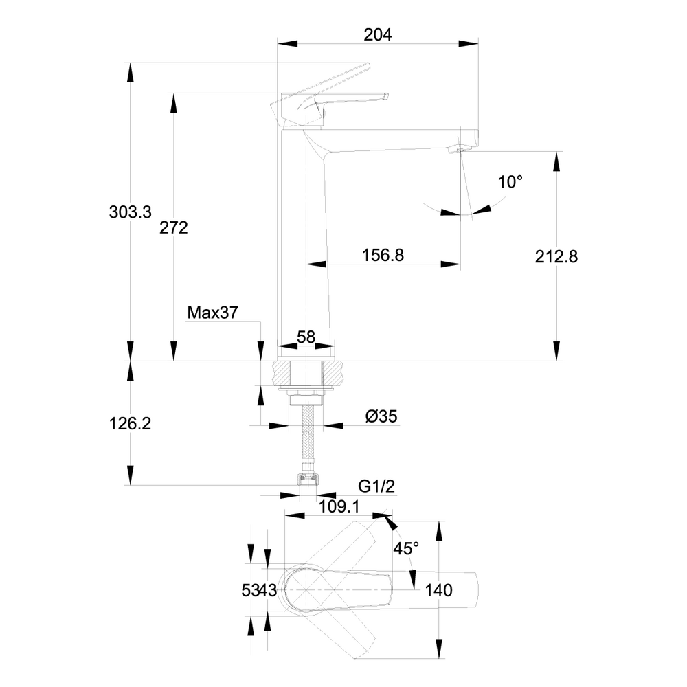 • Смеситель оснащен стандартной подводкой с диаметром подключения 1/2 дюйма, что избавит от проблем при монтаже.