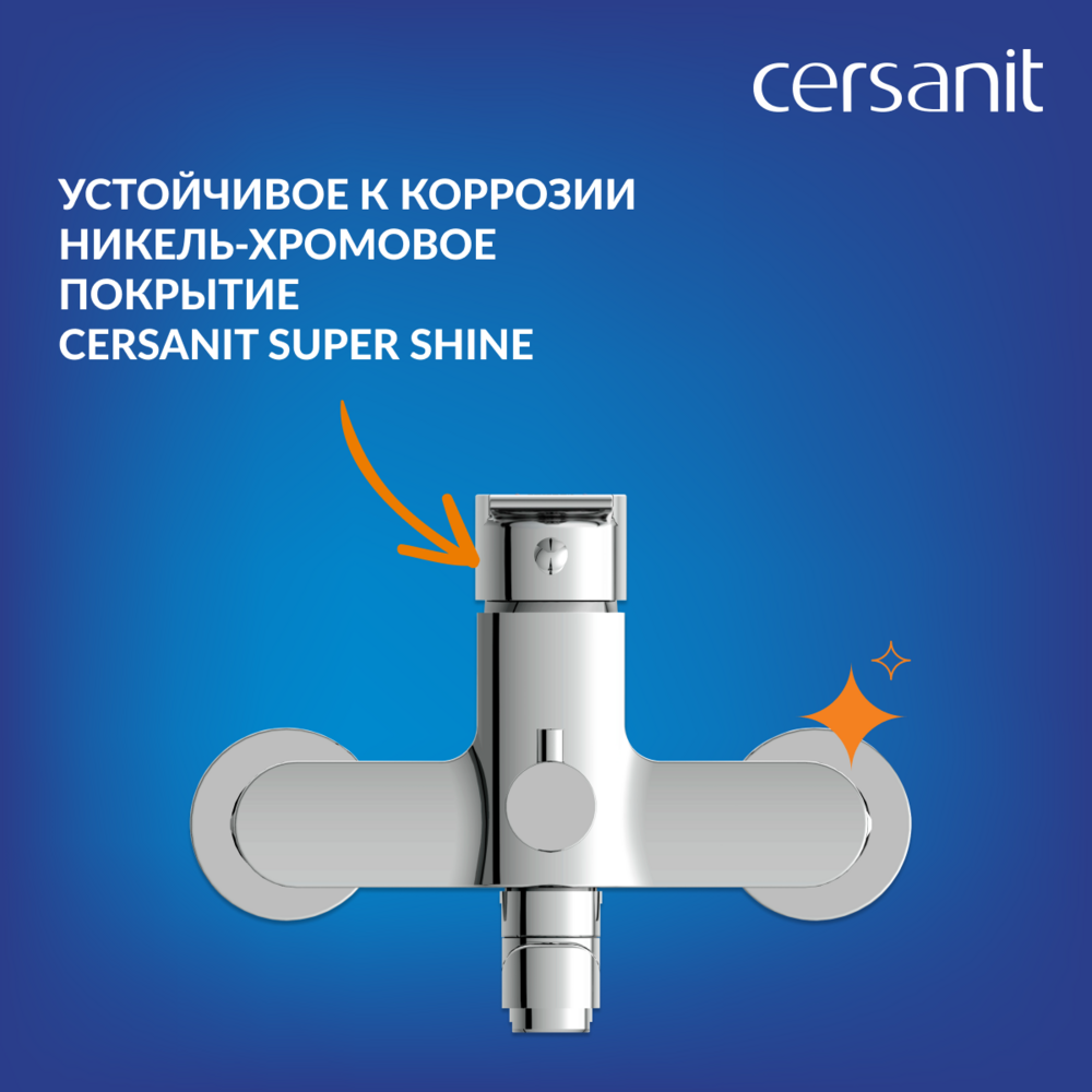 •    Стойкое никель-хромовое покрытие Cersanit Super Shine обеспечивает смесителю зеркальный блеск в течение всего срока службы изделия.