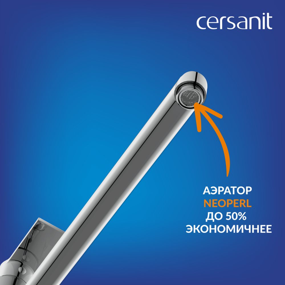 •    Аэратор Neoperl позволяет экономить воду. Его конструкция с защитой от известковых отложений обеспечивает ровный поток без брызг.