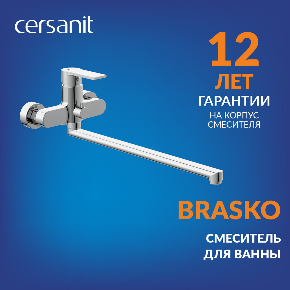 Особенность смесителя для ванны с длинным изливом BRASKO в том, что его удобно использовать одновременно в ванне и в раковине. Рычаг смесителя обеспечивает точную регулировку температуры и напора воды благодаря особенно плавному ходу. Вода подаётся с помощью удобного поворотного переключателя.