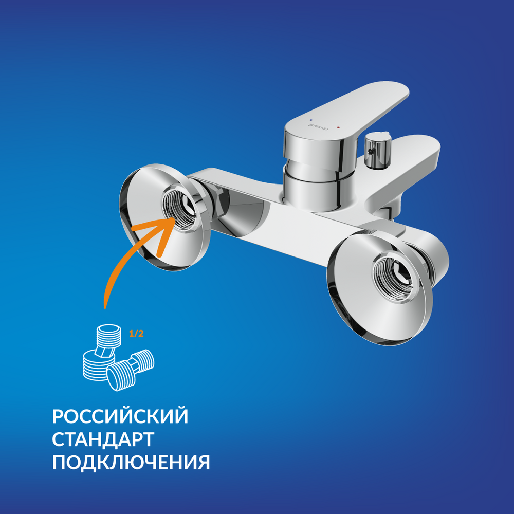 Поворотный дивертор позволяет легко переключаться между режимами ванны и душа простым поворотом ручки. Надёжный керамический картридж обеспечивает более долгий срок службы оборудования, независимо от жёсткости воды. Он рассчитан на 500 000 циклов открытия-закрытия — это до 30 лет бесперебойной работы в семье из 4 человек.