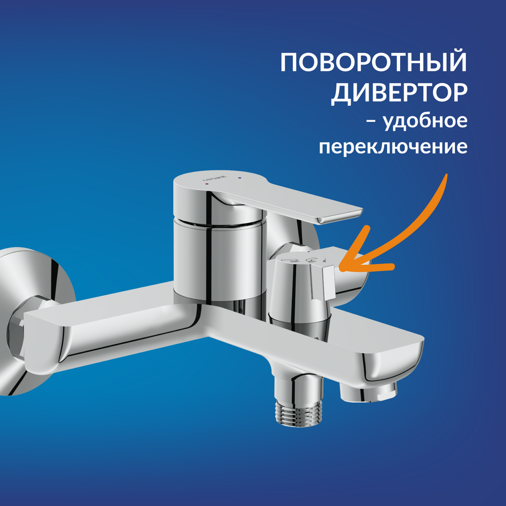 Поворотный дивертор — это надёжное и долговечное решение: он фиксируется в определенном положении, исключая случайное переключение воды между изливом и душем.