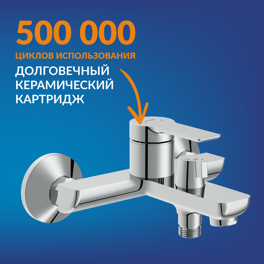 Сердце смесителя — долговечный керамический картридж, рассчитанный не менее чем на 500 тыс. циклов использования. Благодаря высокому качеству комплектующего вода смешивается идеально точно, а ручка движется плавно. Производитель дополнительно дает длительную гарантию на этот элемент 5 лет.