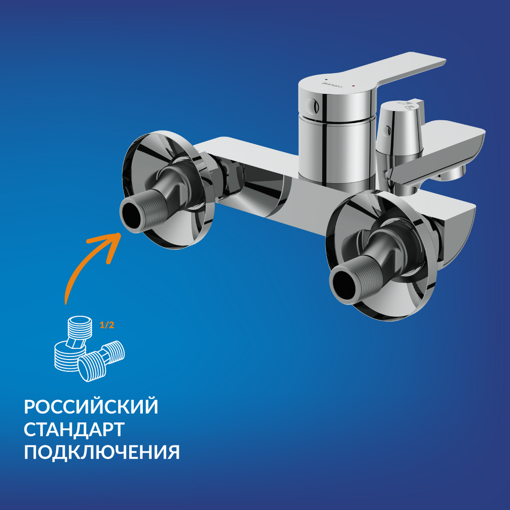 Шланг оптимальной длины 1,5 м не сковывает движений. Эксцентрики с российским стандартом подключения обеспечивают быстрый и простой монтаж.