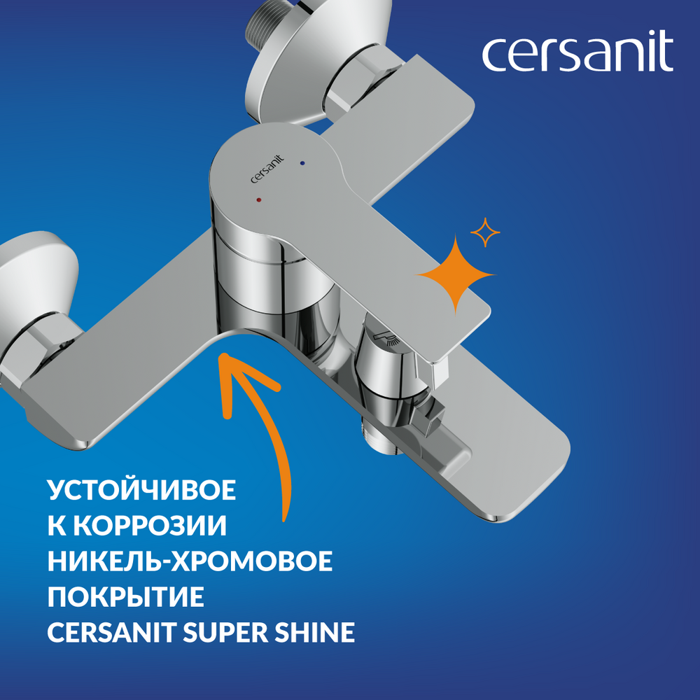 За никель-хромовым покрытием Cersanit Super Shine просто ухаживать. Его стойкий блеск доказан тестами в нейтральной солевой среде. Такой смеситель прослужит дольше и сохранит свой первоначальный внешний вид годами.