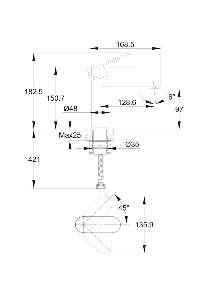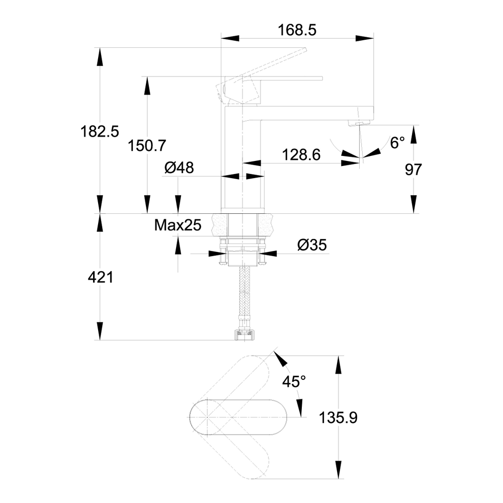 Смеситель для раковины Elio — это долговечное и красивое оборудование со смелым дизайном. Оборудование можно использовать для любых интерьерных решений в современном стиле. Сияющее никель-хромовое покрытие Cersanit Super Shine проходит испытания в нейтрально-солевой среде, что обеспечивает устойчивый блеск долгие годы.
