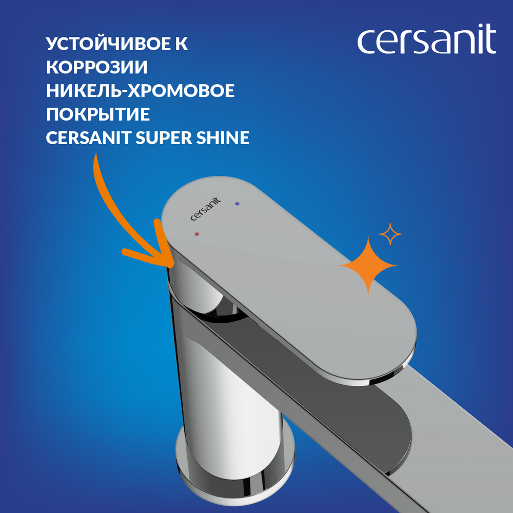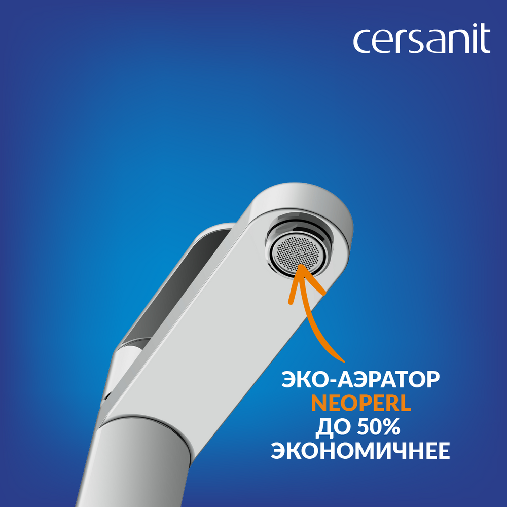 За никель-хромовым покрытием Cersanit Super Shine просто ухаживать. Его стойкий блеск доказан тестами в нейтральной солевой среде. Смеситель оснащен аэратором Eco Neoperl, который подает 6 литров в минуту и позволяет экономить до 50% воды.