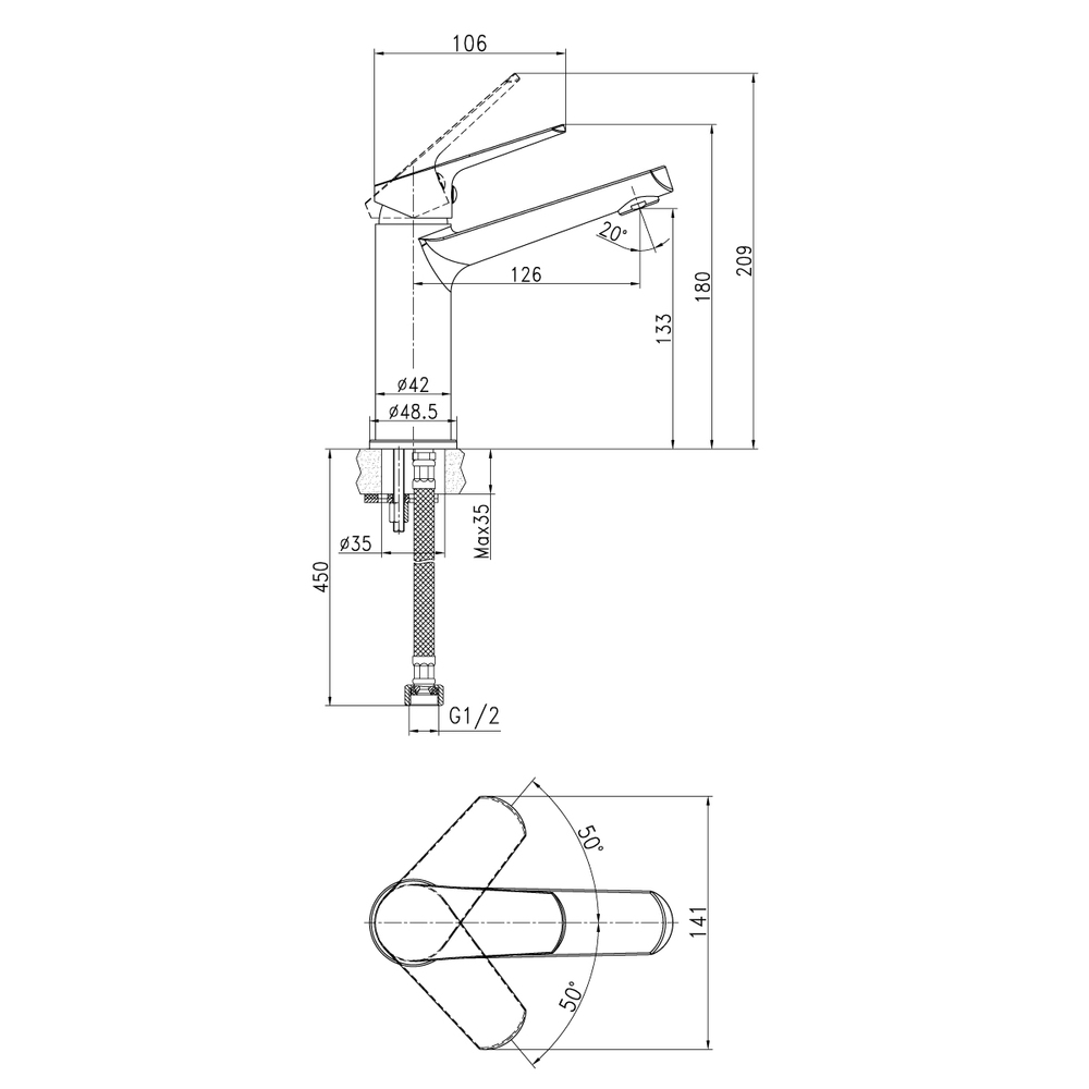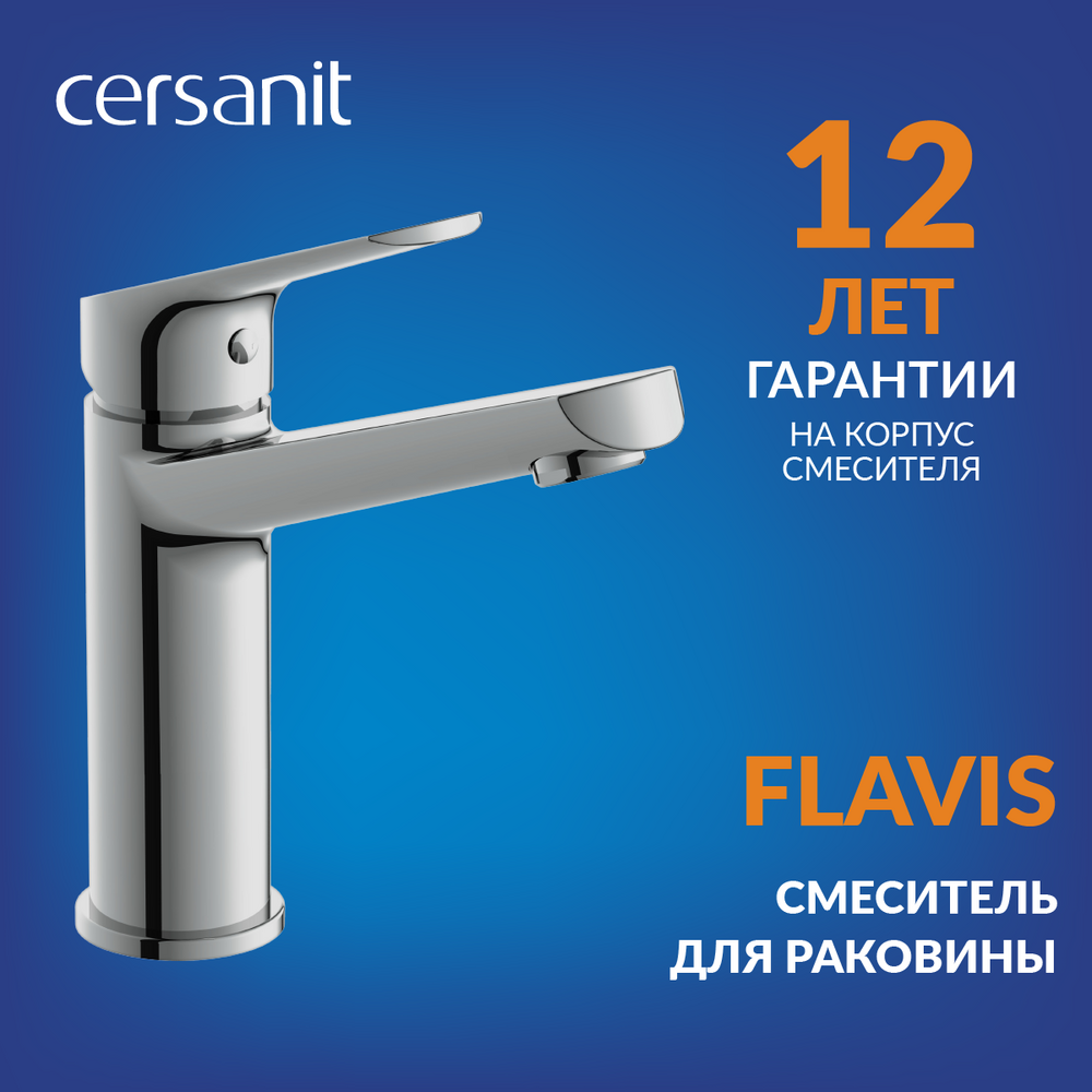 Смеситель для раковины Flavis совместим со встраиваемыми раковинами. Цельнолитой латунный корпус с высоким содержанием меди в составе, надежно защищен изнутри от коррозии. Смесителю не страшны перепады давления в трубах, поэтому производитель дает длительную гарантию на корпус изделия — 12 лет.
