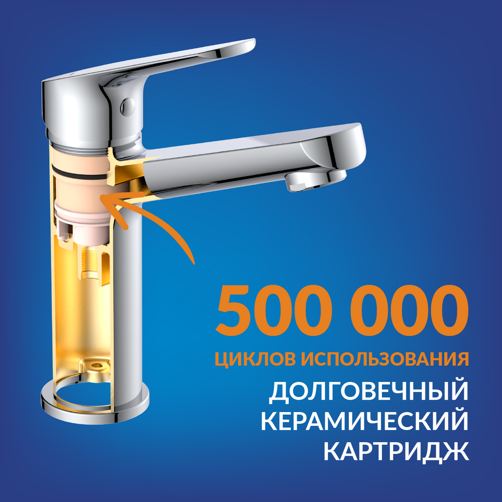 Керамический картридж 35 мм рассчитан на 500 тыс. циклов открывания и закрывания и точно смешивает воду. Гарантия на этот элемент составляет 5 лет.