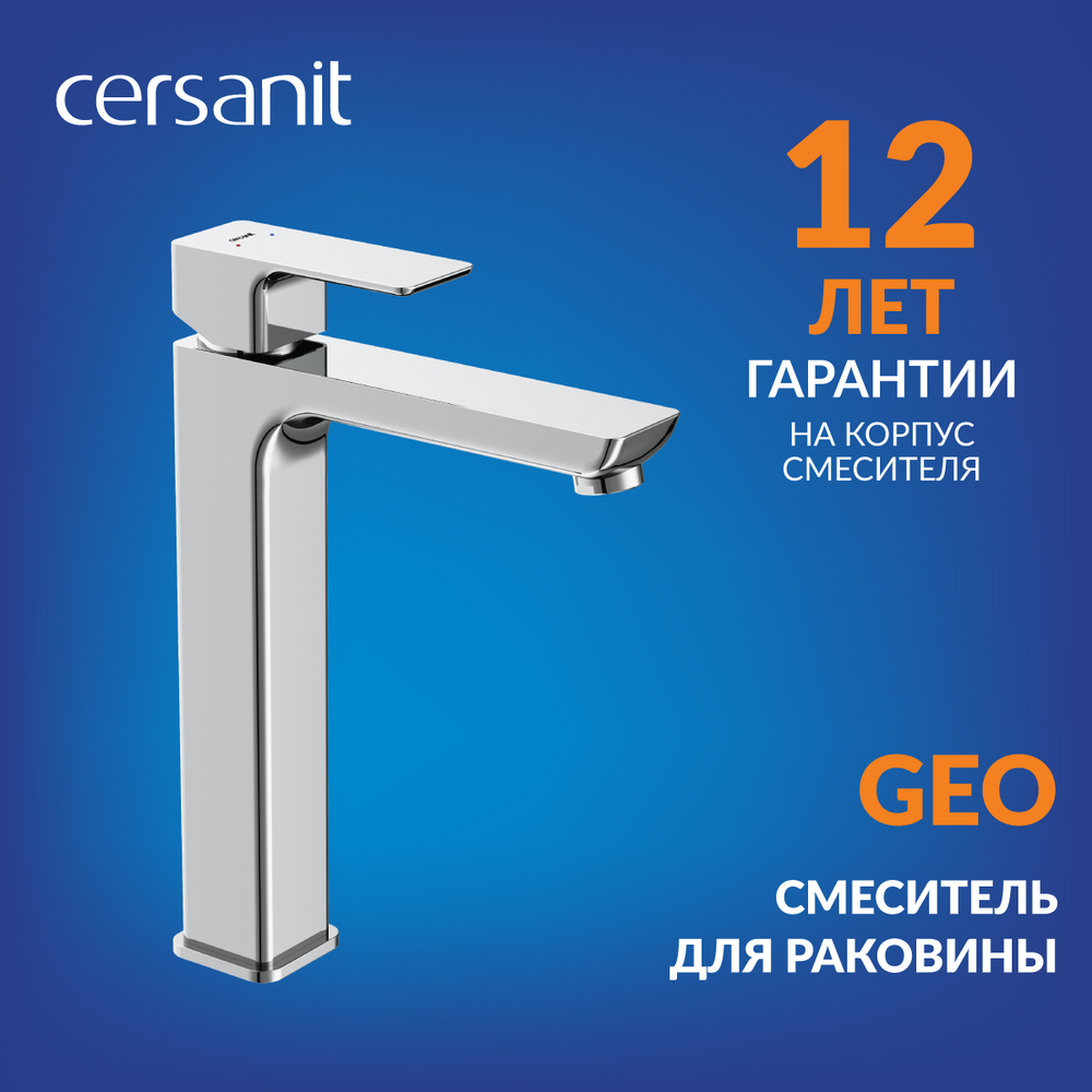 Высокий смеситель для раковины Geo с отточенными линиями будет прекрасным дополнением умывальной зоны с накладной раковиной. Благодаря рельефному корпусу блики света красиво отражаются в гранях смесителя, что делает его ещё более эффектным.