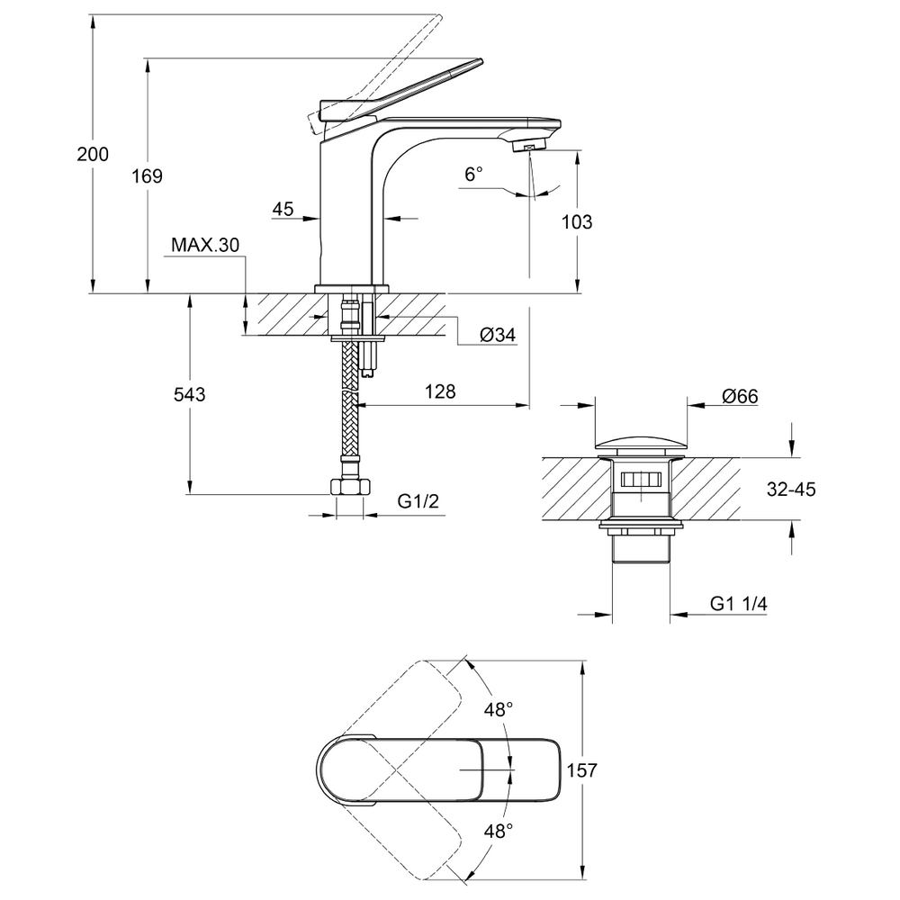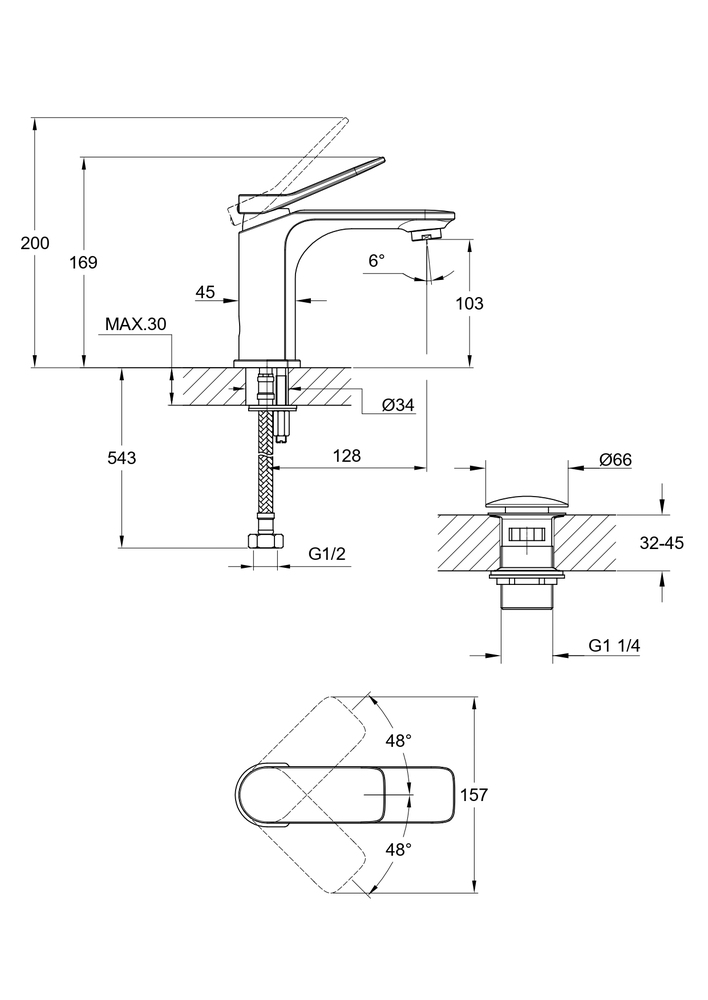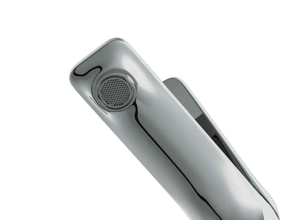 Смеситель оснащен аэратором Eco Neoperl, который пропускает до 6 литров воды в минуту, что экономит ресурс до 50%. Аэратор перемешивает воду с воздухом и рассеивает струю, подавая воду без брызг. В комплекте со смесителем — донный клапан с механизмом клик-клак, лёгким нажатием на который удобно и быстро перекрывается слив.