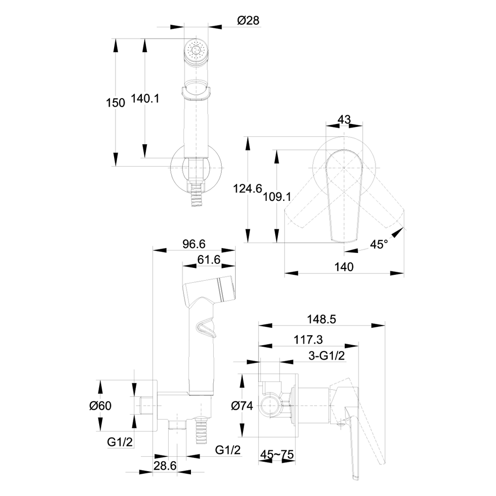 Гигиенический душ MODUO — находка для дизайнера. Особенность этой системы в том, что рукоятку можно установить в отдалении от смесителя. Держатель для компактной лейки встраивается в стену, что позволяет спрятать все коммуникации. Мелкодисперсный аэратор обеспечивает комфортный напор воды, тихую работу и минимизирует брызги. Удобный шланг из нержавеющей стали длиной 1,2 м не ограничит в действиях. Плавный ход рукоятки обеспечивает комфортную подачу и смешивание воды.