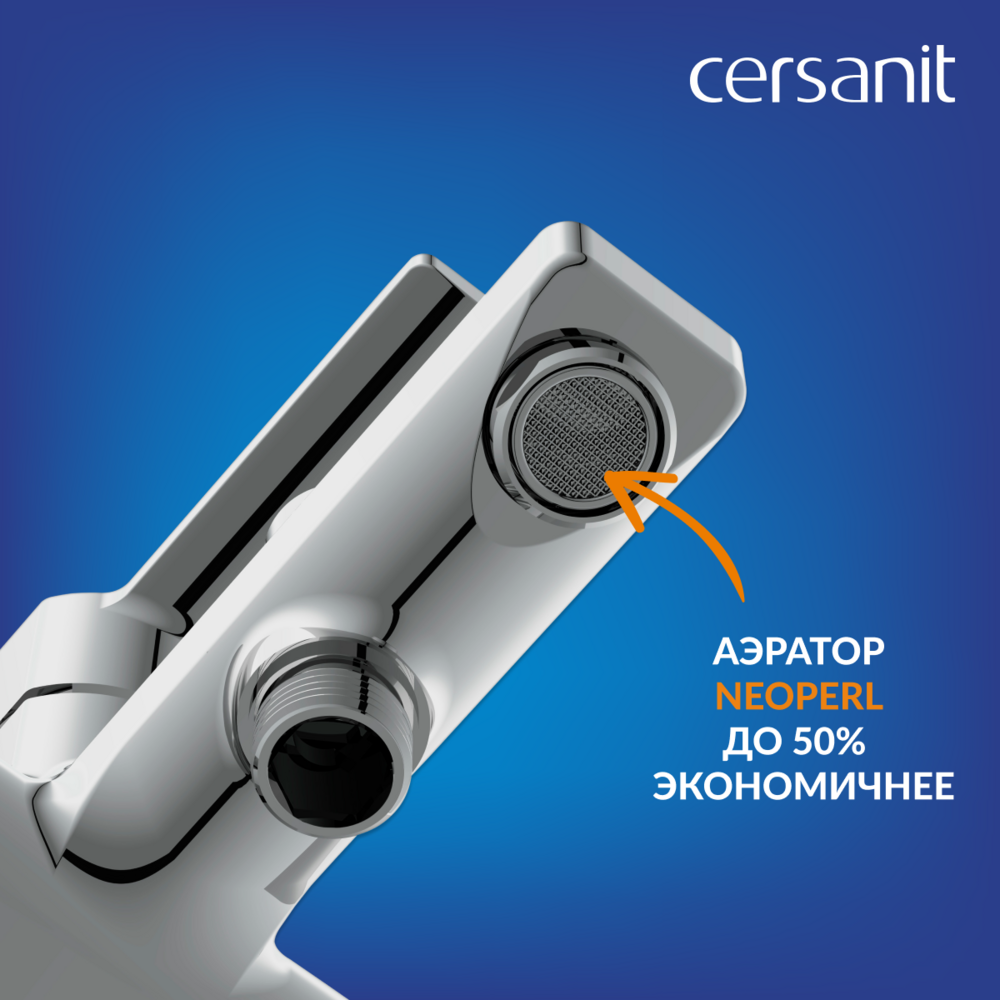 Никель-хромовое покрытие смесителя Cersanit Super Shine дарит сантехнике стойкий блеск. Оборудование легко поддерживать в чистоте весь срок службы изделия. Аэратор Eco Neoperl эффективно перемешивает воду с воздухом, рассеивая поток воды. Таким образом легко экономить ресурс и семейный бюджет.