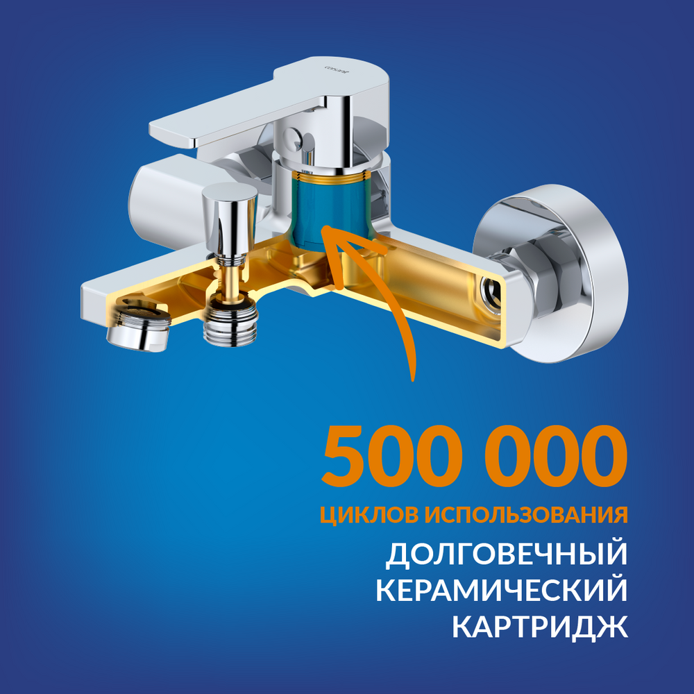 Оборудование оснащено керамическим картриджем, рассчитанным на 500 тыс. циклов открывания и закрывания и защищенным гарантией производителя на 5 лет. Благодаря ему вода точно смешивается даже при плохом напоре.