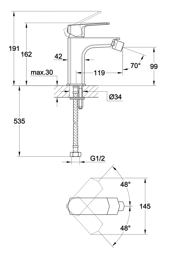 Смеситель WISLA для биде (чертеж)