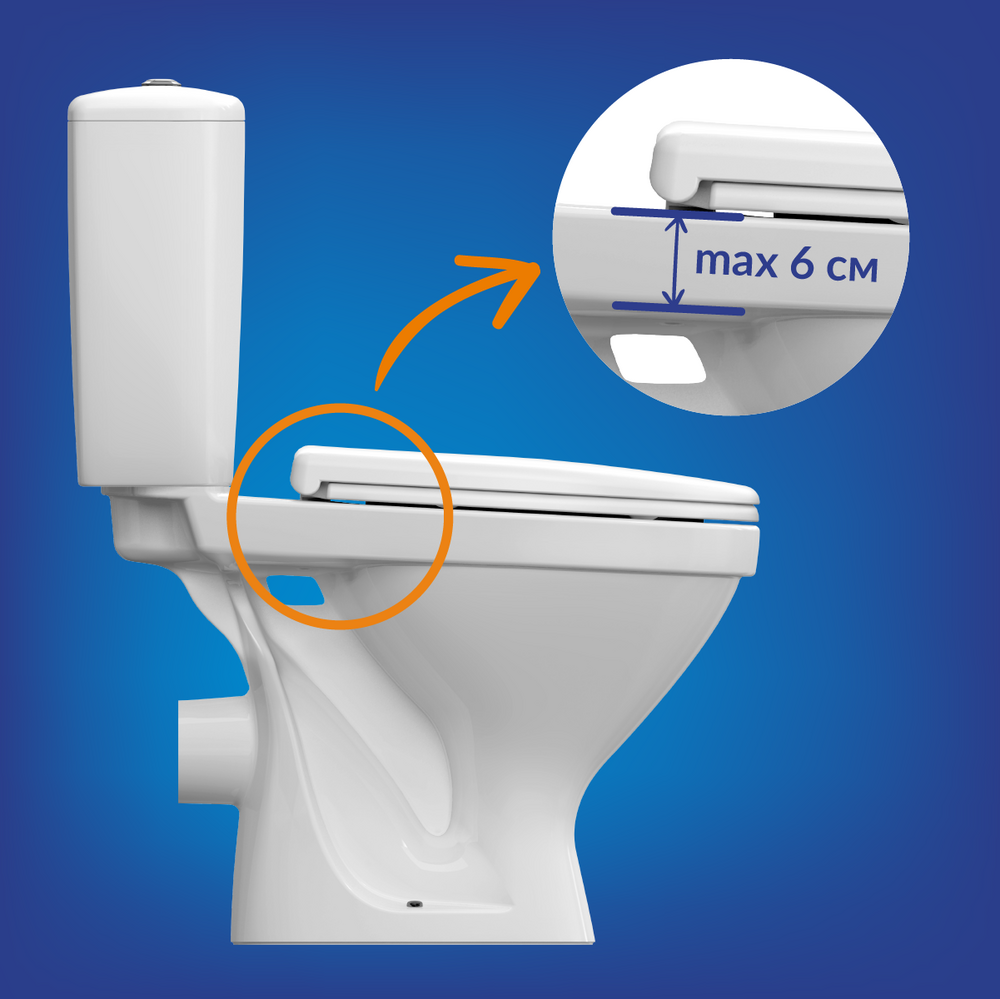 При покупке сиденья Trento для унитаза не бренда Cersanit проверяйте не только совпадение формы унитаза и сиденья, но и высоту полки унитаза. В комплект сиденья входят крепежные элементы длиной 85 мм, которые подходят для унитазов с высотой полки не более 60 мм.