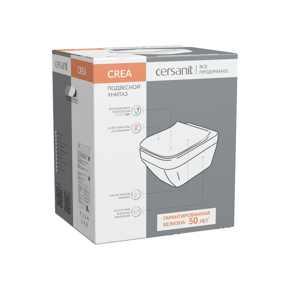 Подвесной унитаз CREA SQUARE Clean On DPL EO slim