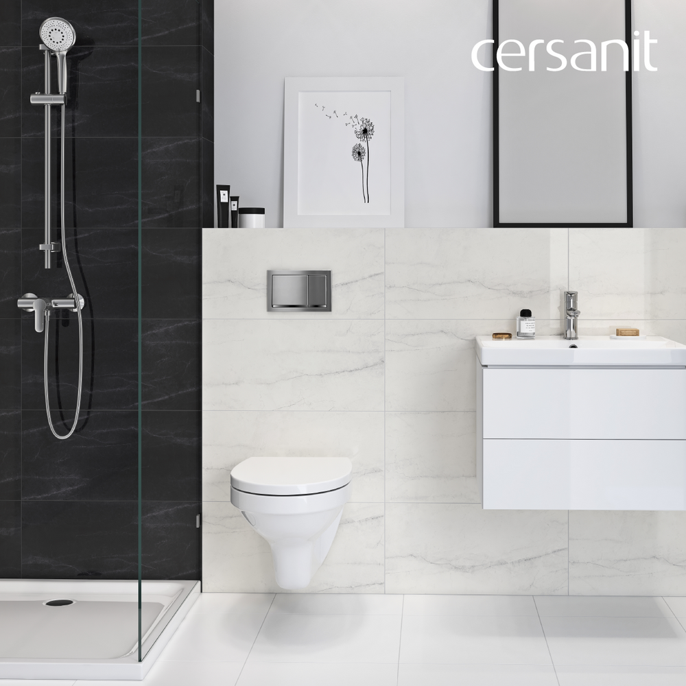 Подвесной унитаз с термопластным сиденьем с плавным закрыванием.
