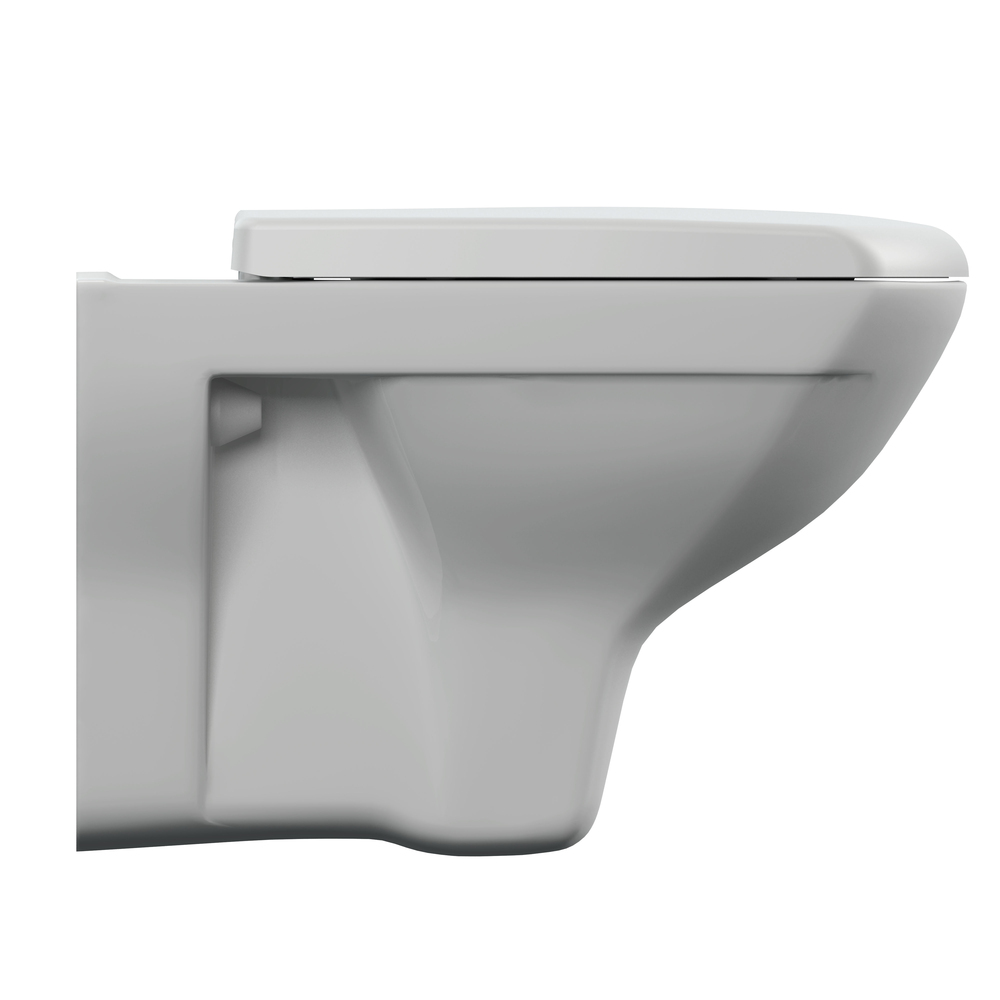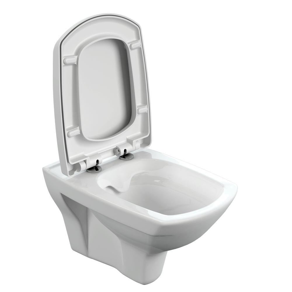 Унитаз настенный керамический безободковый; сиденье для унитаза из дюропласта с легкосъемом и с функцией плавного закрывания; инструкция/гарантийный талон