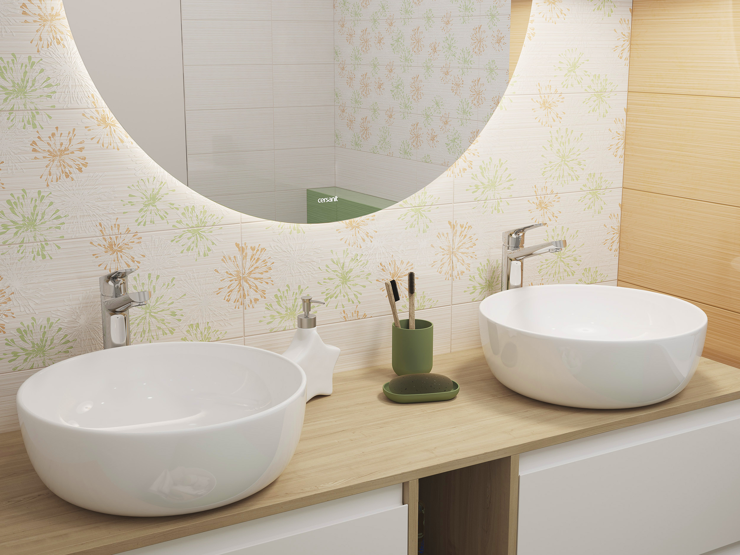 Яркая и жизнеутверждающая коллекция Light бренда Mito станет находкой для создания интерьера в насыщенных цветах. Плитку светло-бежевого, оранжевого и зелёного цвета можно миксовать, расставляя нужные акценты. Вдохновляющим дополнением коллекции стала декоративная плитка с растительным принтом. Все элементы связаны между собой полупрозрачным узором древесных волокон поверх основного фона. Это добавляет коллекции стиля и делает её универсальным инструментом для создания современных интерьеров.