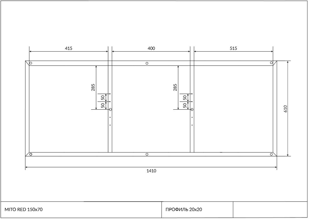 Рама д/ванны: Mito Red 150 NEW (чертеж)