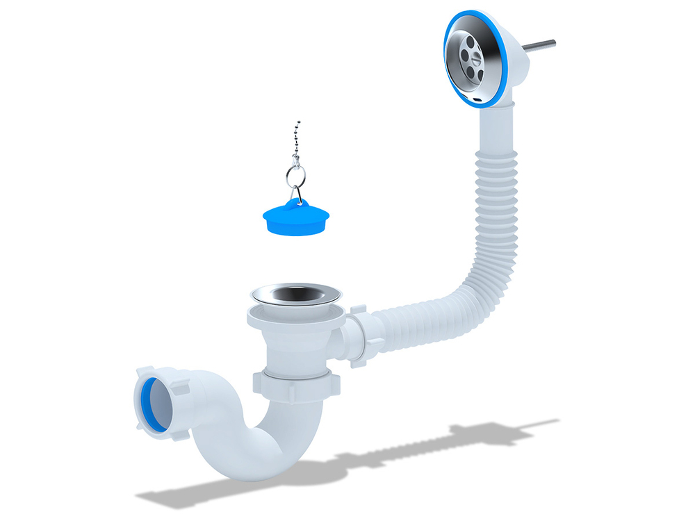 Универсальные сифоны с классическим исполнением. Модель универсальна и подходит к любым ваннам с отверстием слива и перелива сопоставимого размера.