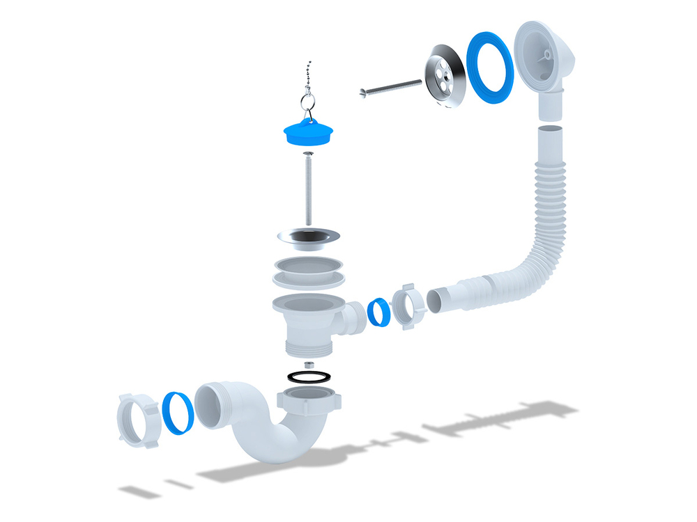 пробка, сифон прямоточный с гидрозатвором, слив-перелив