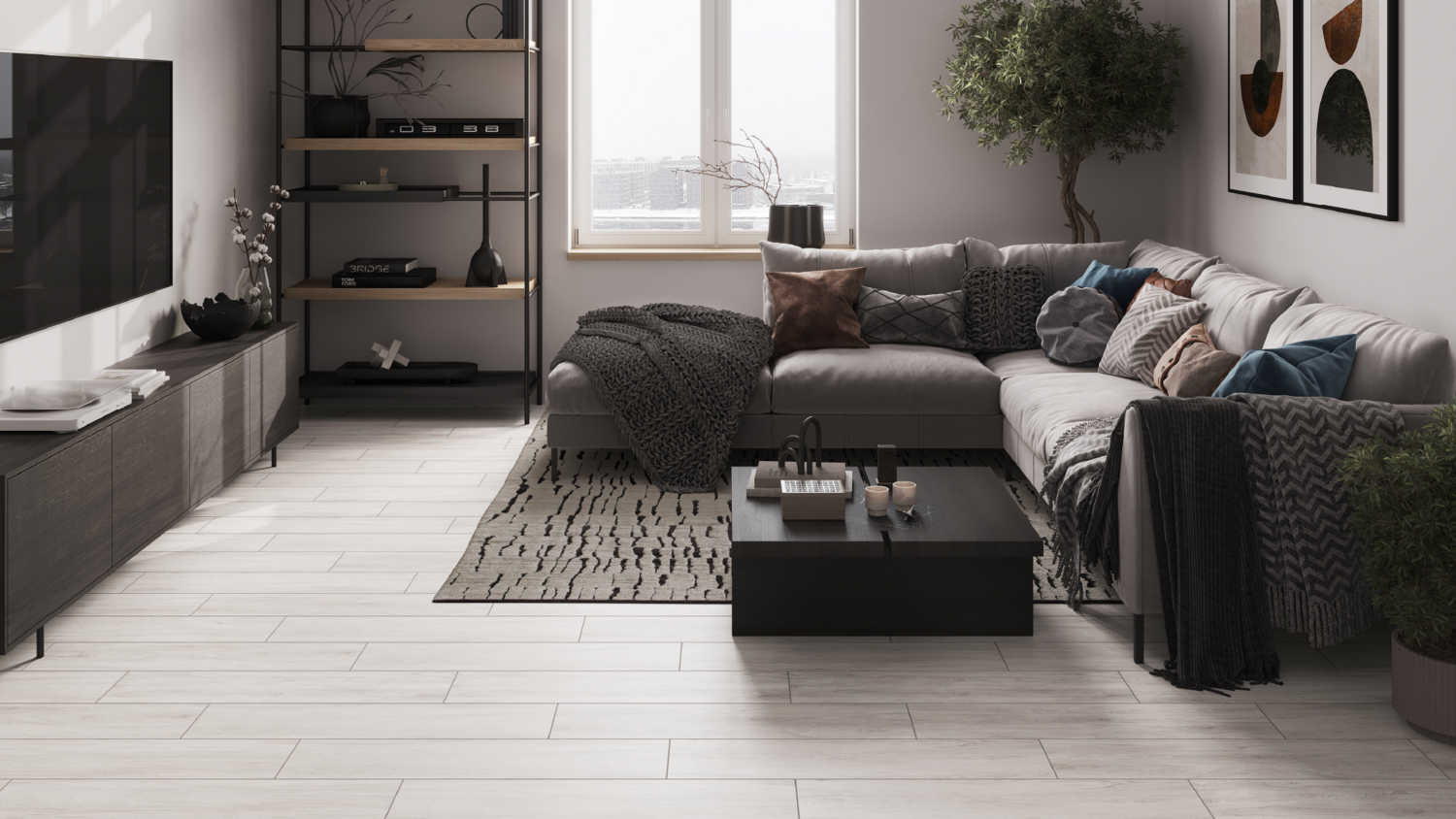- Мягкий и дружелюбный, деликатный керамогранит Bonsai Tree в четырех цветовых вариантах
