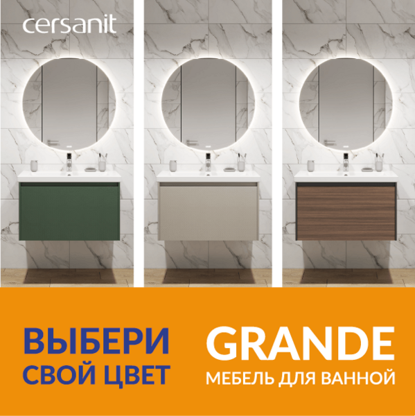 Cersanit представляет новинку – цветные подвесные тумбы Grande с современным дизайном. Новинки представлены в трёх стильных оттенках и двух актуальных размерах для воплощения смелых дизайнерских задумок.