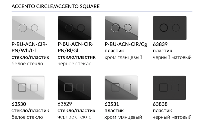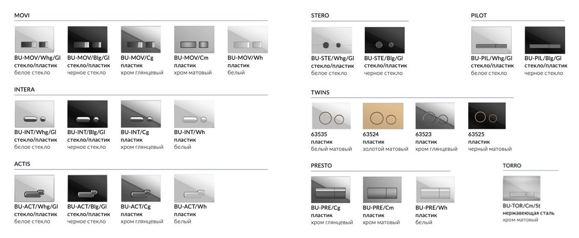 На вопрос «Какая лучше кнопка инсталляции» есть один ответ — подходящая. К инсталляциям серии AQUA Cersanit предлагает более 30 различных моделей, выполненных из высококачественного пластика и стекла. Однако к механическим инсталляциям не подойдут пневмо-кнопки, как и наоборот.