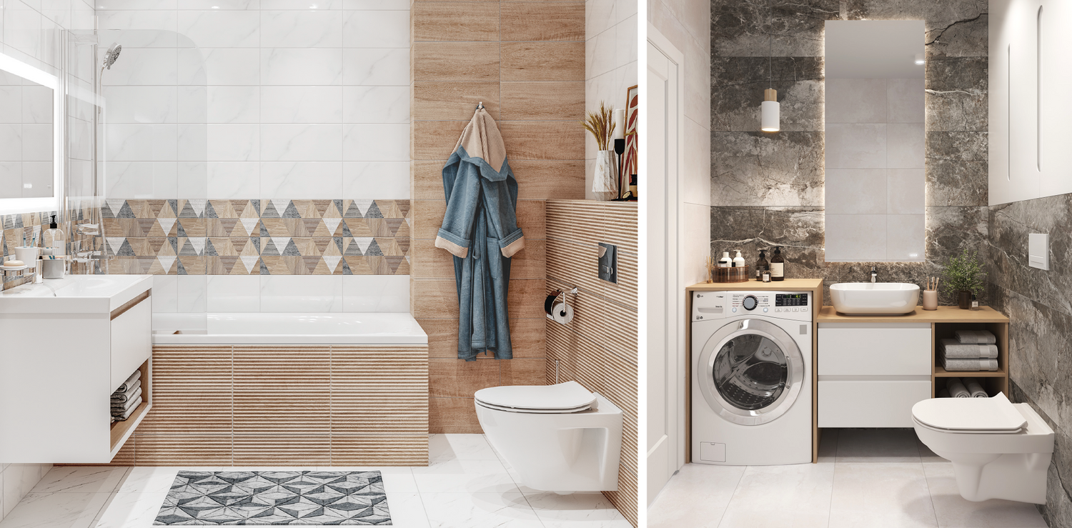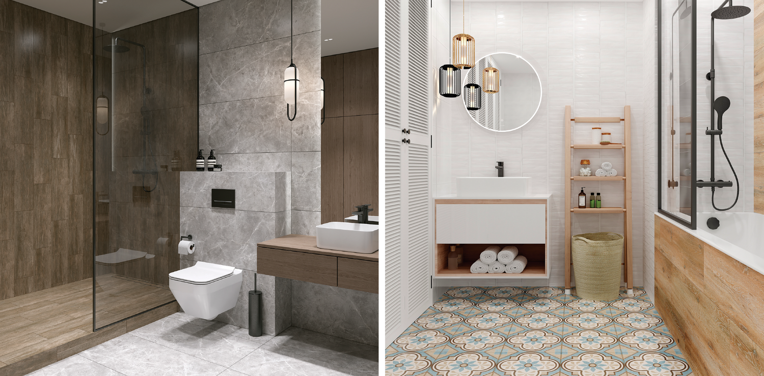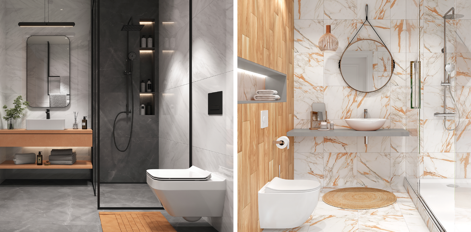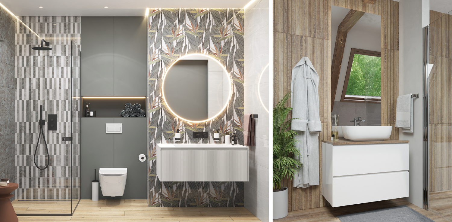 Создать настроение легко с помощью коллекций настенной плитки и керамогранита Cersanit, акцентными могут стать чёрные смесители и кнопки инсталляций. Упорядочивают пространство и определяет стиль предметы мебели и белоснежное оборудование без лишних деталей. Ну а вишенкой на торте, дарящей вдохновение и воздушную лёгкость интерьеру, становятся парящие led-зеркала, включающиеся по взмаху руки.