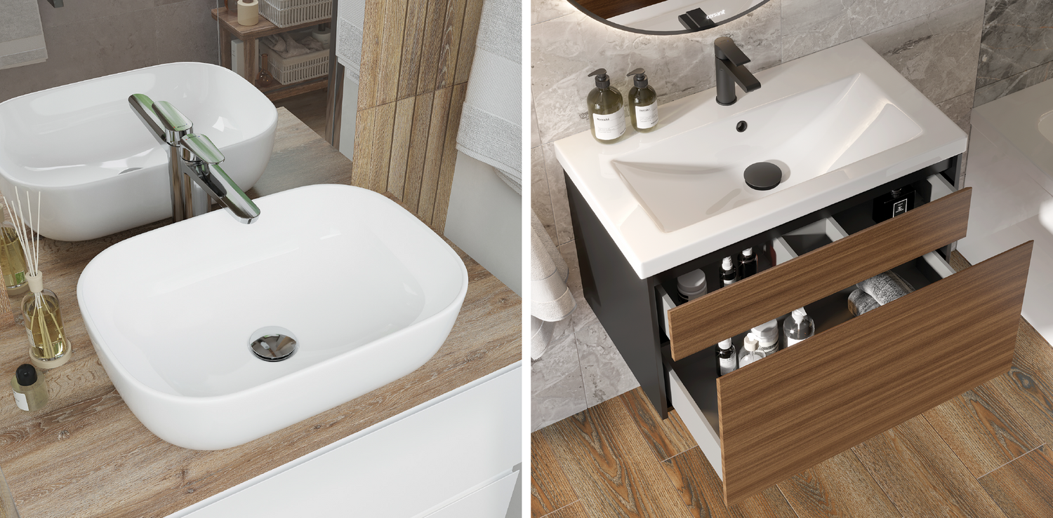 Товарами Cersanit просто наполнить компактные ванные комнаты. В коллекциях представлены тумбы, столешницы, раковины, зеркала и инсталляции от 40 см. Продукция в минималистичном дизайне даже небольшого размера выглядит стильно и современно.